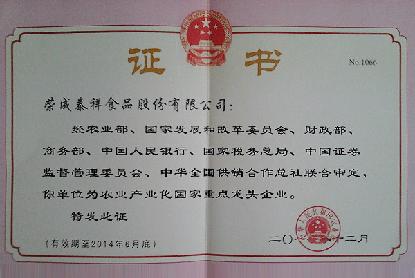 山東省肉類食品業界肉類加工(調理製品)優位企業第二名